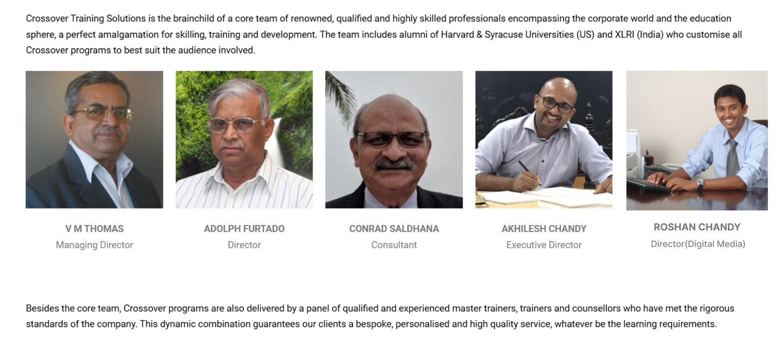 Crossover programs encompass a wide array of subjects ranging from Artificial Intelligence to soft skills, team building and leadership development. All these programs are designed to inspire, renew and transform the lives of participants.